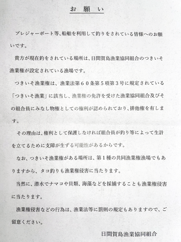 日間賀島漁業協同組合 区画漁業権地区図 2022 4/14 三河ボート 2022.04.14 2022.04.14 三河ボート よかったらシェアしてね! URL Copied! URL Copied! 今日も悪い潮の中ポツポツと釣れました。 今日、日間賀島漁協の方達がわざわざ三河ボートまで来てくださり釣り場禁止区域の説明をしてくれました。私も漁師ですので区域の事、違反の事、自分達の生活を守る事など良く分かります。三河ボートを利用して下さるお客さんもご理解の程宜しくお願いします。ホームページにも禁止区域を載せてありますので確認して下さい。分からない方は電話予約の際聞いて下さい。 関連記事 今日は風雨波強く海が荒れてます海の生き物には必要な事です 2021.11.09 8月12日の釣果! 2024.08.13 7月30日! 2022.07.30 小さな船ですが出船できるように船体塗装中です 2021.11.15 大漁!満足!後はブリサイズが欲しかったですね。次回大物を期待してますよ(^.^) 2021.12.12 第三大宏丸 船底掃除塗装しました 綺麗になりました 2023.05.29 JCIの検査待 2021.07.30 1月22日の釣果! 2023.01.22