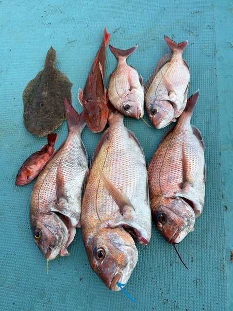 今日は平日一隻の出船ですが、最近鯛が好調なのでどうかなと期待していましたが、皆さんも満足した釣果だったみたいで良かったですね!サイズも良いのが上がってました😁今からシーズンですので次も期待出来そうです👍 -
