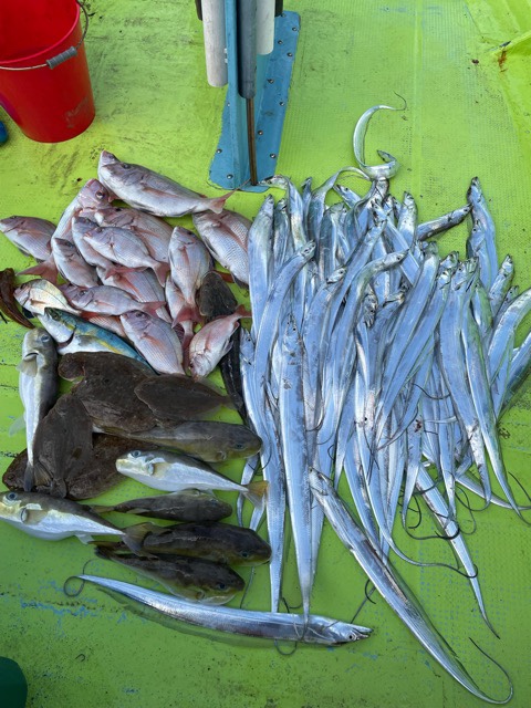 最近タチウオが少し大きくなって数も沢山釣れるので今日も少しの時間で沢山釣れました👍タイラバも潮がよく動くのか先週よりも良い感じです!明日も期待出来そうですね😁今日も皆さんお疲れ様でした🫡 -