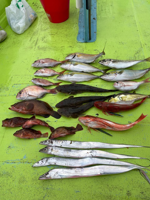今日は70オーバーの大鯛にタイウオといつも通り安定の魚の釣果あるのですが、青物はイマイチ!そこらじゅうで出てますが食いが悪いのはタイミングですよね〜😅今後に期待ですね😁 -
