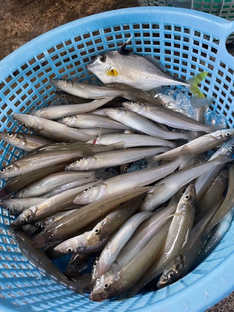 子供を連れてキスを釣りに行って来ました😁港から5分位の場所で20cmオーバーのキスが連発であがり、子供2人の2時間で60匹前後は釣れました👍キスの刺身は最高に美味しかったです😋 -