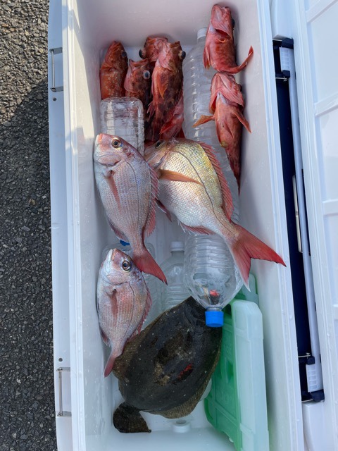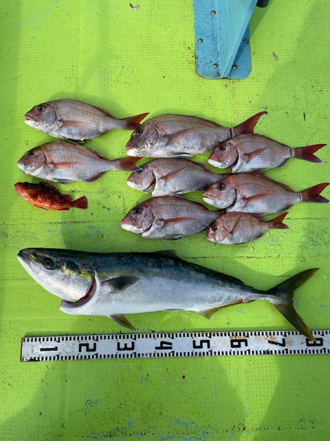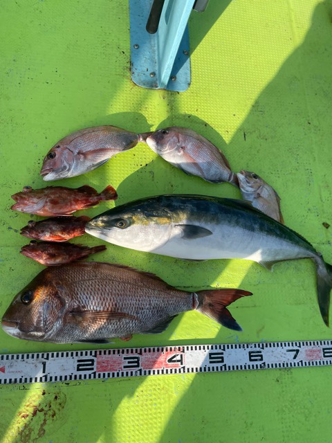 少し間が開いての出船ですが釣れましたね。潮は悪いですが天気は良く鯛にワラサにカサゴが釣れました。今日は粘り勝ちでしたね!お疲れ様でした😊 -