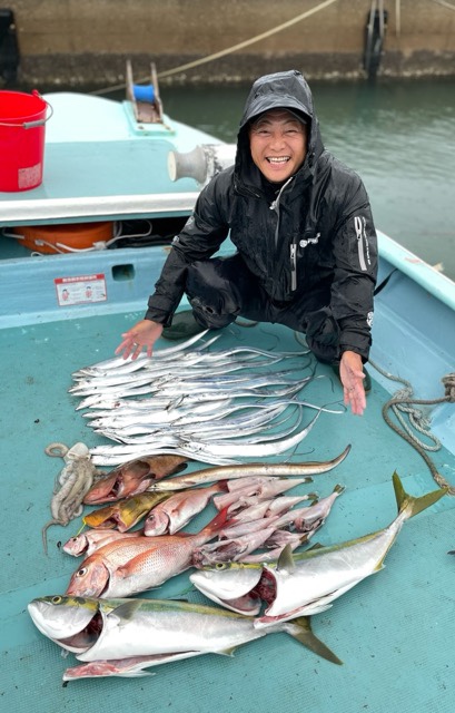 今日は雨と風とウネリでやりたい場所も攻めれない中、頑張って出てくれました。写真無いですが角石近くで青物ポツポツ釣れてました。沖は底が取れない位船が流されて釣りになりませんでした。明日は風が強いので海の状況が変わってくれればと思います。今... -
