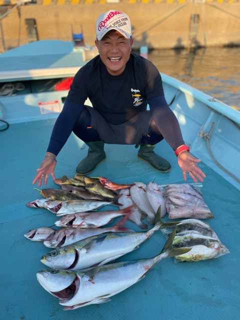今日は風予報でしたが案外吹いてなく沖に出れた人もいて鯛など釣れましたね。佐久島周りの青物は不調でしたがブリをゲット出来たお客さんもいたので良かったです。皆さんお疲れ様でした! -