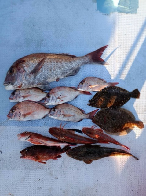 今日は波も風も穏やかな1日でした。最近は地合いと場所に当たれば青物は絶好調だけど、真鯛が少し渋いですね。何処でも現れるグーフーですが2人でこれだけ釣れてこのサイズなら嬉しいかな。食べても美味しいですからね。後はラインさえ切られなければです... -
