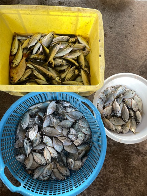今日はお客さんを送り出してから、息子とその友達を連れて少しだけ釣りに行きました。2時間半でアジ170匹と沢山釣れました。三河湾のアジは黄金色で美味しいのですよ! -