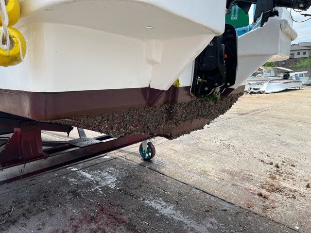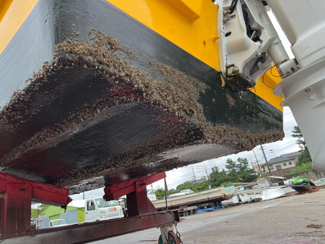 大宏丸上架して船底掃除塗装します 大変汚れてます