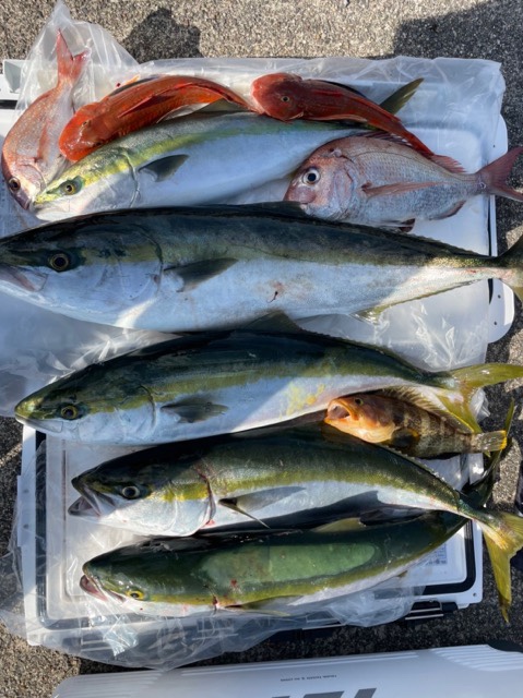 今日は天気が悪く早上がりする方も居る中で、雨の中頑張って釣ってきてくれた人も居ました。青物に本命のサワラと中でも一番はイシダイの成魚でクログチですね。雨の中釣れて良かったですね。お疲れ様でした! -