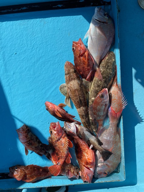 今日の沖は渋かったです。根魚と大アジがとても美味しそう。地元もようやくキスが釣れ始めましたが、毎年よりもまだまだ数が少ないですね。 -