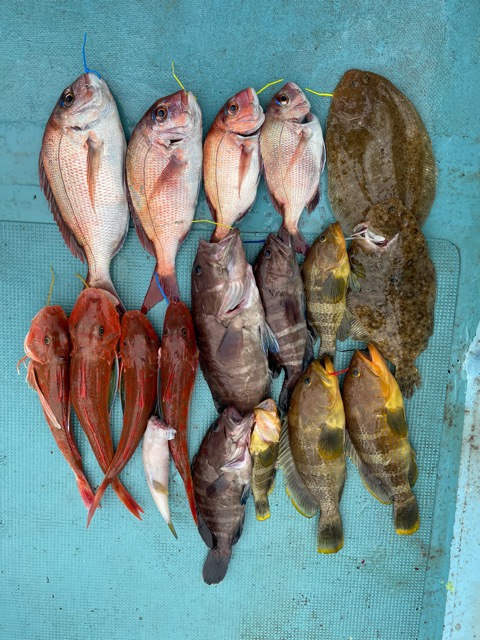 今日も色々釣れました。最近色んな魚種が増えてきたので楽しいですね。今日の大鯛は70cmでかなり立派でした👍 -