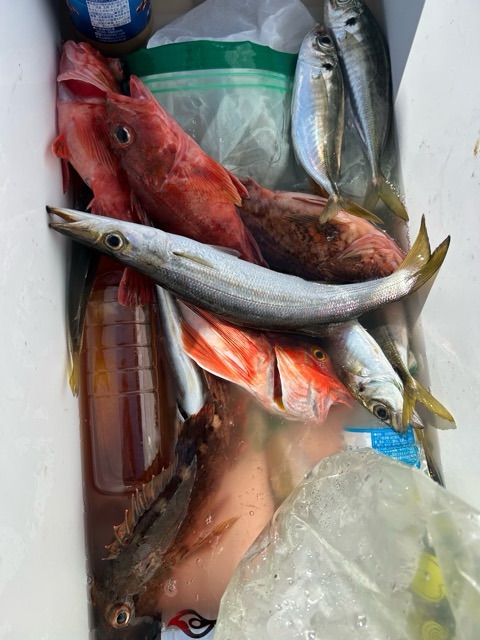 今日も沢山釣れてます。朝から青物のナブラもあって食ってもバラシなど数回有りながらブリの顔も見れて、40オーバーのアジは体高も10センチはあって見事で、タイやカサゴも数が釣れました! 第四大宏丸⬇️ -