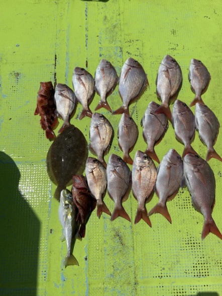 今日はタイにアジ、大アジ、カサゴ、その他色々と結構釣れました😁一日中当たりがあった船もあって、昼から風がそよそよしたけど楽しめましたね!まだまだこれから楽しめそうなので期待してもいいと思いますよ😆 ここから第四大宏丸 -