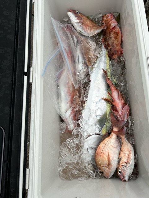 今日は風との闘いで、釣る時間も限られた中の釣りでしたが何とか釣れました!狙いの真鯛にクロダイ、マコチ、イネゴチ、カサゴ、ハマチ、マハタ、キジハタなどが釣れました😊一日やれて風も無かったらもっと釣れたでしょうね😆 -