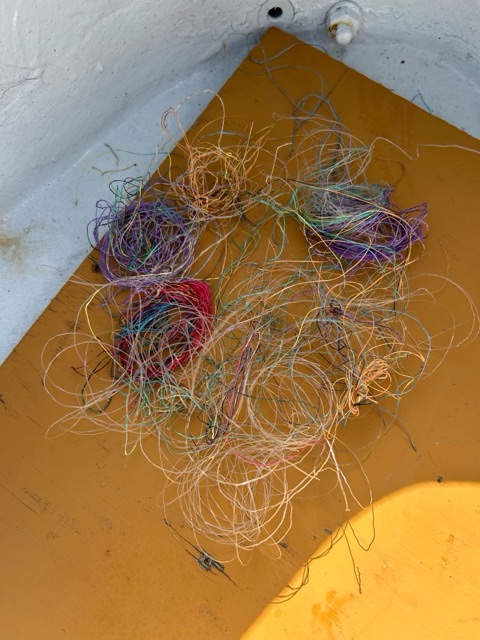 PEライン等をプロペラに巻いた場合は帰港後でいいので必ず教えて下さい。写真を見れば分かると思いますが、これだけの長さを巻いてれば本人も気づいてる筈です。ペナルティは有りませんので必ず報告する様お願いします! -