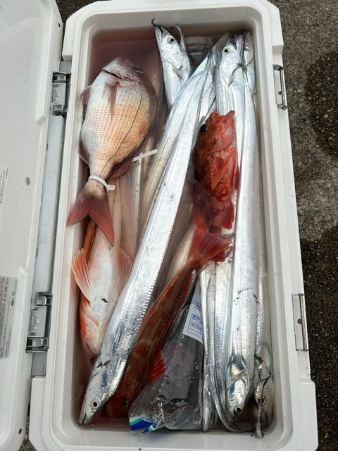 今日は折角の釣り日和になったのに釣果に満足な人は少なかったですが、それでもタチウオなどでクーラー満タンの船もあったし、アオリイカやタイも顔は見れたので何とかなってよかったです😆 -