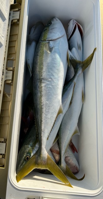 今日は青物好調でツバスからワラサまでのサイズがよく上がりました。アオリイカ、タイラバもボチボチで、シーバスのボイルがあり全体的に良かったですね👍 -
