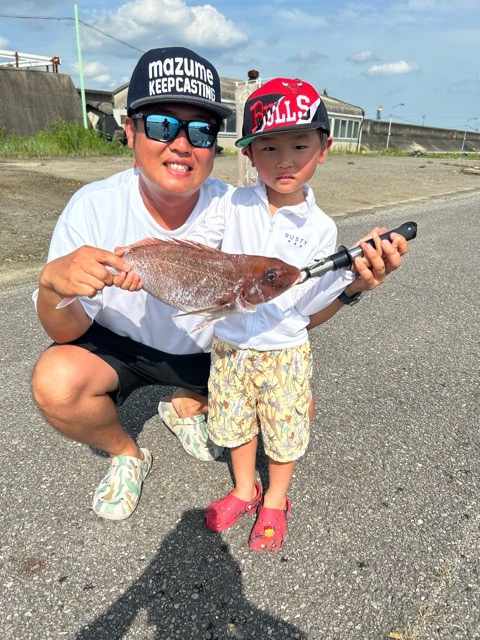 今日は写真に可愛い子が真鯛を持ってますが、何とこんな小さな子が自分で釣ったそうで、将来の釣り吉でしょうし楽しみですね😄暑い中頑張りましたね👍また遊びに来てね〜😊 -
