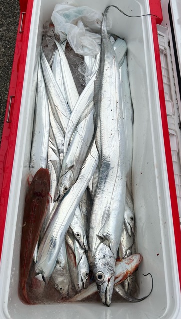 今日はタチウオが沢山釣れて、指5本のドラゴンサイズも上がりました😊ブリ、ワラサも釣れてますので青物が好きな方には良い時期になって来ましたよー😁 -